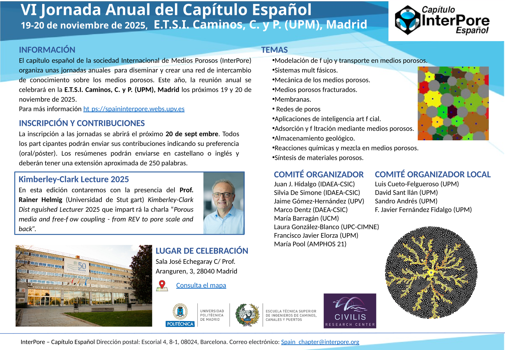 The Spanish Chapter will meet in Madrid on November 19-20th, 2025 in the José Echegaray room of the E.T.S.I. Caminos, C. y P., Technical University of Madrid. Registration will open next September 20th. Check the brochure (versión en castellano) or the VI Annual Meeting page for more information.